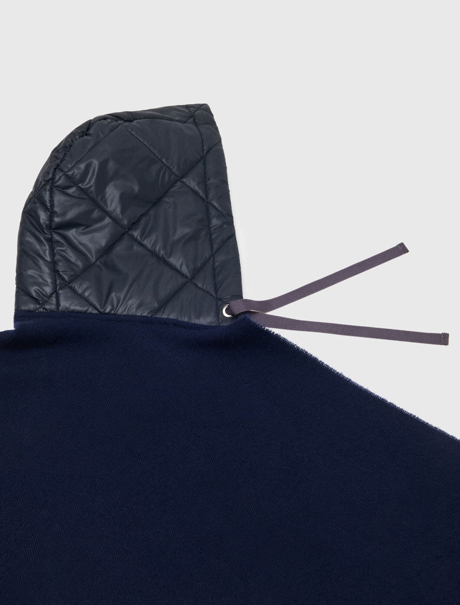 بونشو من الصوف بغطاء للرأس لون كحلي