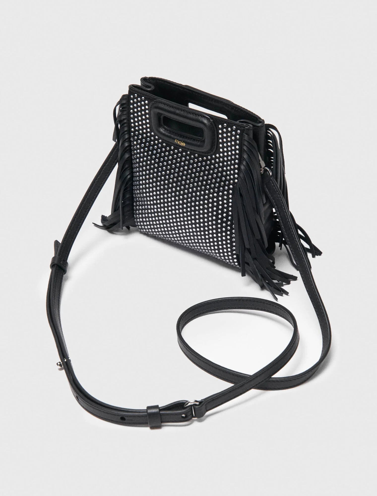 Maje's iconic M bag, available in a mini version with rhinestones, is both chic and practical. Trimmed with fringing on the sides and featuring a sheathed handle, it has an embossed logo and a signature engraving on the snap hooks. Practical, with a magnetic closure, it has an adjustable and removable leather shoulder s...