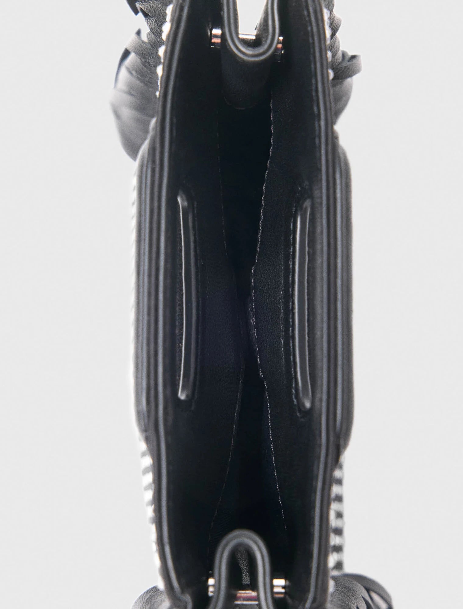 Maje's iconic M bag, available in a mini version with rhinestones, is both chic and practical. Trimmed with fringing on the sides and featuring a sheathed handle, it has an embossed logo and a signature engraving on the snap hooks. Practical, with a magnetic closure, it has an adjustable and removable leather shoulder strap, so you can carry it by hand, on your shoulder or crossbody.